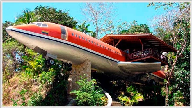Posiblemente ya no lo satisfaga ni un asiento de primera clase en el vuelo de regreso tras su estadía en el Hotel Costa Verde, con vistas del Océano Pacífico desde su atalaya en la selva. La habitación más inusual del hotel es un avión Boeing 727 de 1965, totalmente reciclado, cuyo interior ha sido convertido en una suite de dos dormitorios. El fuselaje del avión descansa sobre un pedestal de 50 pies (unos 15 metros), lo cual hace sentir que uno está en vuelo. En el exterior del avión se ha construido un balcón que va de un ala a la otra, para que el visitante pueda disfrutar de la vista al mar.